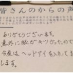 今まで多くのお客様に、施術をさせていただいてきました。そんなお客様より頂いたお声の掲載を、当HP内にて掲載しておりますのでご覧ください。