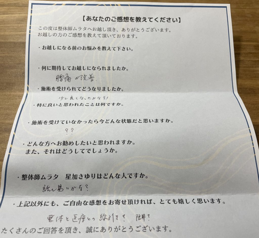 整体師ムラタ 星加サユリです。