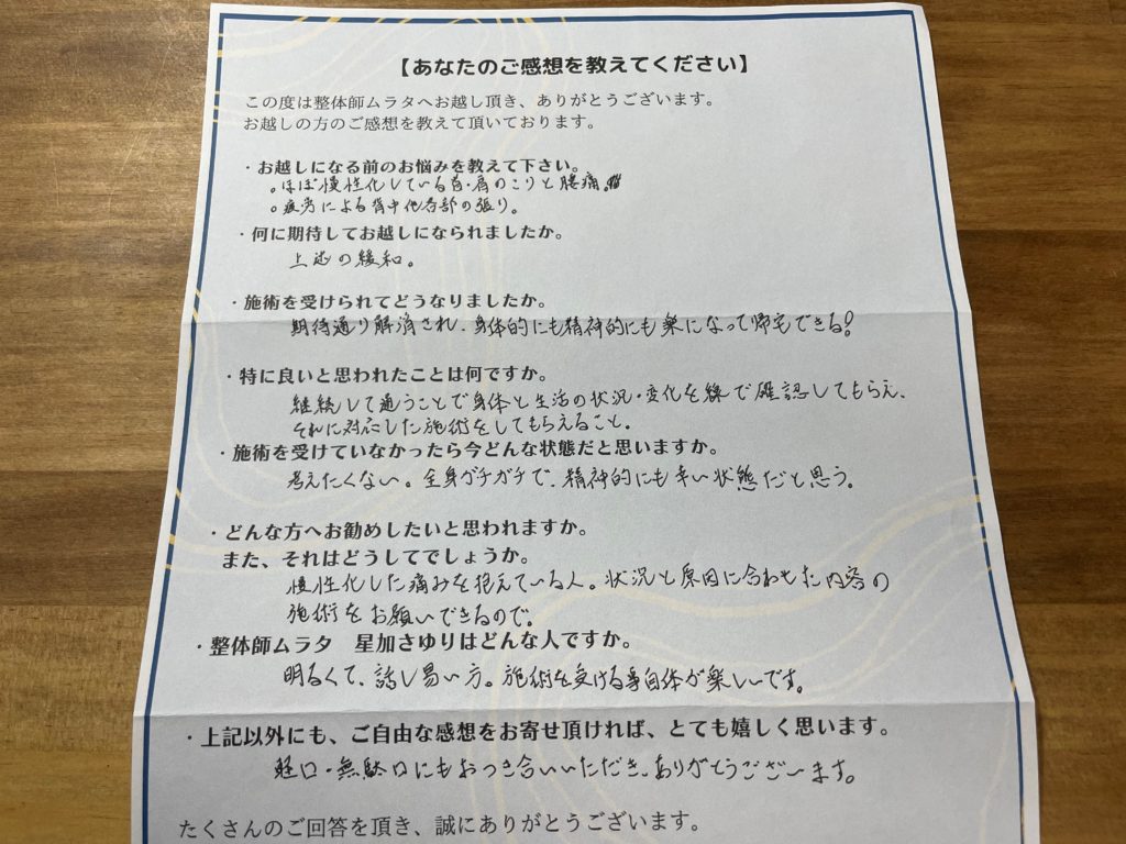 今まで多くのお客様に、施術をさせていただいてきました。そんなお客様より頂いたお声の掲載を、当HP内にて掲載しておりますのでご覧ください。