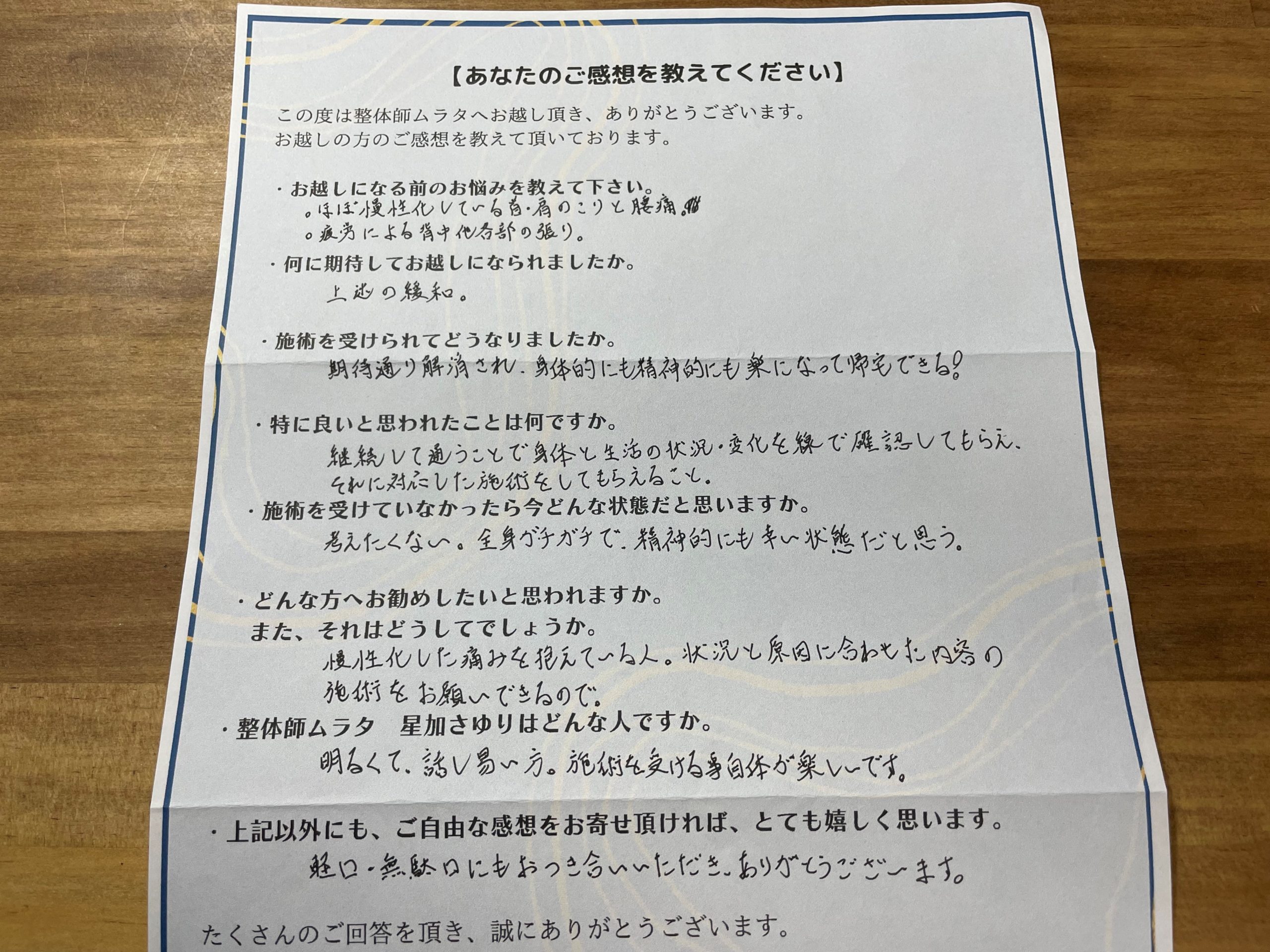 整体師ムラタ 星加サユリです。